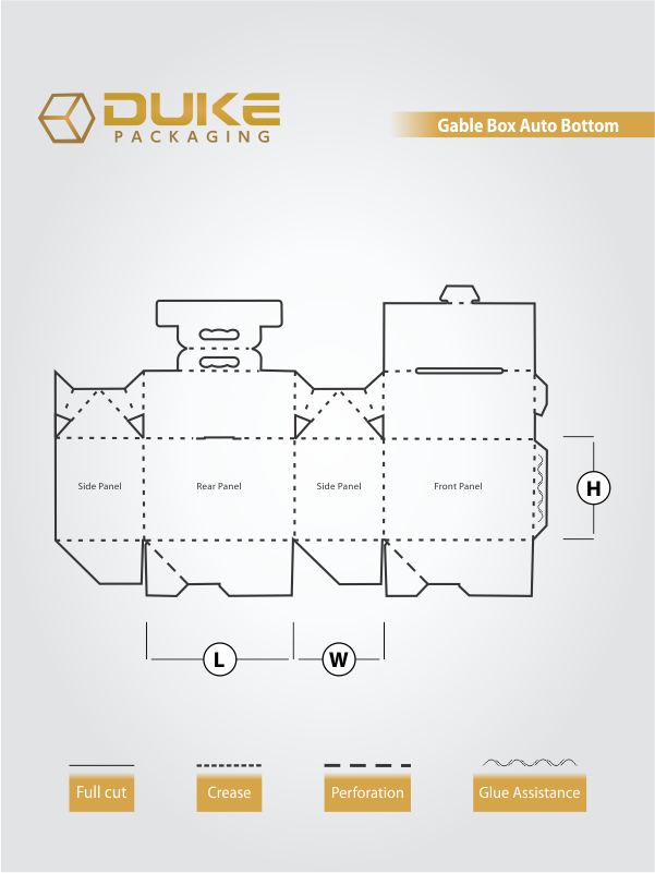 Duke Packaging intends to provide a full service atmosphere of experienced designers, print experts and project managers all fully committed in ensuring that your gable box with auto bottom boxes shine. On the initial idea stage to the final delivery we integrate speed, quality and creativity genius to package your products in a way that not only protects products but delivers maximum in brand value.